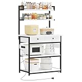 1Flrrtenv10% OffFlrrtenv 5-Tier Kitchen Bakers Rack with 3 Power Outlets, Microwave Stand with 2 Drawers, Coffee Bar Shelves Cabinet with Storage Shelf, Heavy Duty Kitchen Cart Island Table for Spices, Pans White