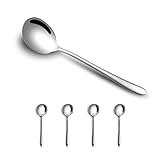 2Buyer Star4-Piece Stainless Steel Bouillon Spoons - Heavy-Weight Round Deep Bowl Spoons for Soup, Grain, Dessert, Milk