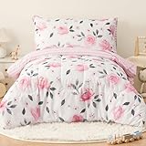 1PHFPHF 4 Piece Toddler Bedding Set, Ultra Soft Toddler Comforter Sets Include Comforter, Fitted Sheet, Flat Top Sheet and Pillowcase for Girls, Floral Bed in A Bag for Baby Bedroom, Floral